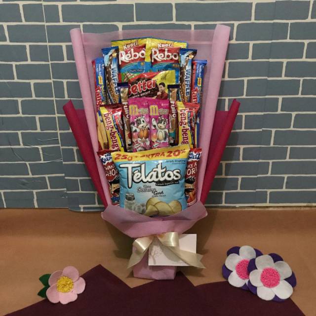 Cara Buat Bouquet Snack : Resep Buket Snack Anti Gagal. Cara buat buket snack (pakai kertas kado) sendiri // diy snack bouquet easy. Untuk membuat buket snack, anda hanya . Ragam aneka snack · 2. Alat yang tidak boleh ketinggalan dalam cara membuat buket . Sebab, berbagai jenis makanan tersebut dirangkai semenarik mungkin dan disulap menjadi buket bunga.